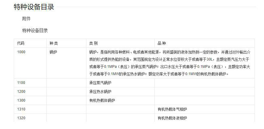 鍋爐,是指利用各種燃料、電或者其他能源,將所盛裝的液體加熱到一定的參數(shù),并通過對外輸出介質的形式提供熱能的設備,其范圍規(guī)定為設計正常水位容積大于或者等于30L,且額定蒸汽壓力大于或者等于0.1MPa(表壓)的承壓蒸汽鍋爐;出口水壓大于或者等于0.1MPa(表壓),且額定功率大于或者等于0.1MW的承壓熱水鍋爐;額定功率大于或者等于0.1MW的有機熱載體鍋爐。很顯然,電加熱導熱油爐適用于有機熱載體爐的規(guī)定,也就是說根據(jù)其加熱功率來劃分是否屬于特種設備。